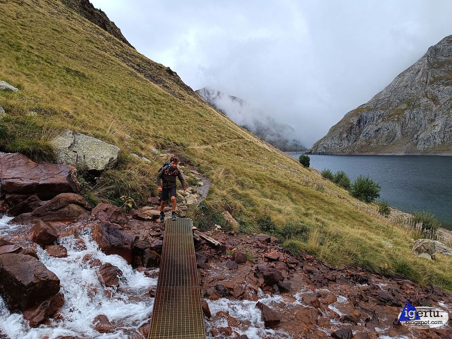 Desde aquí toca bajar un poco para ponernos a la par del ibón de Botornás y tras atravesarlo toca subir un poco para alcanzar el moderno refugio.