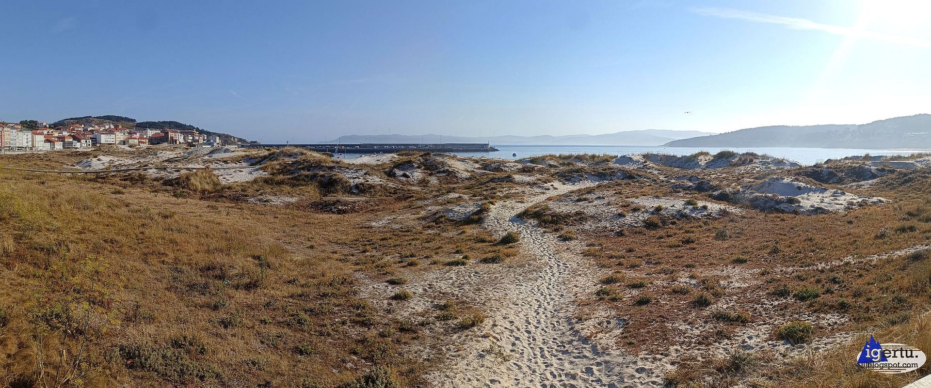 09:45 (12,3km) -> En Laxe (11m) recorremos el paseo marítimo que va junto a las dunas que lo separan de la hermosa playa de arena blanca.