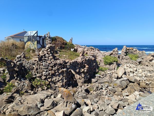 12:00 (37,2km) -> Camelle (8m) tiene una hermosa playa y una coqueta zona portuaria. El espigón que protege el puerto alberga unas pequeñas construcciones de granito realizadas por un alemán. Mientras Jurgi y Bea buscan dónde comer, yo voy a recuperar la furgoneta.