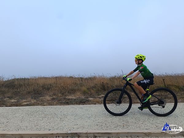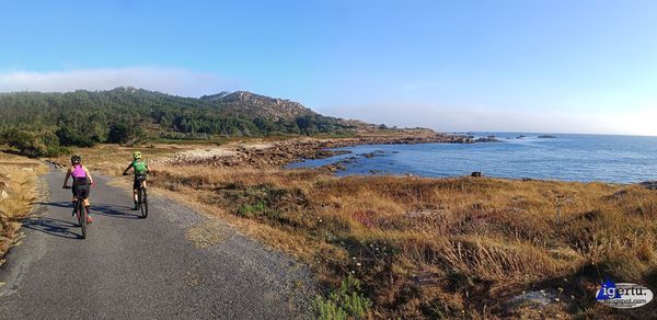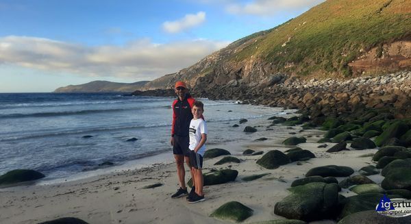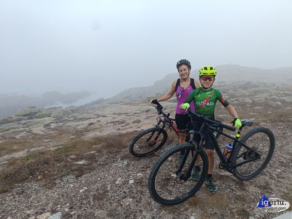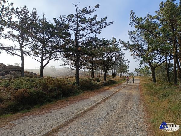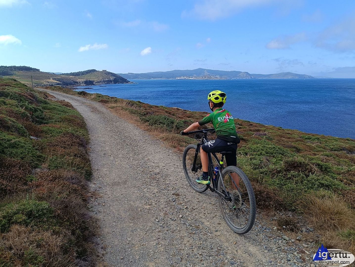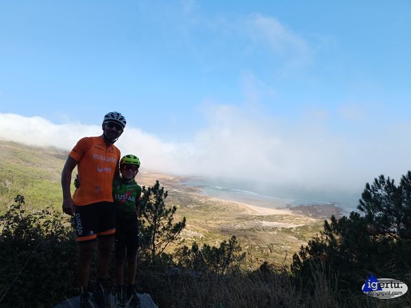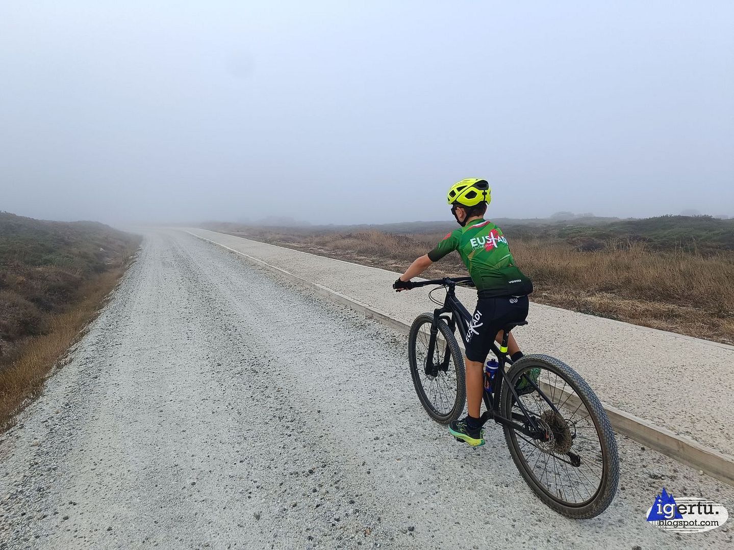 La bruma costera nos engulle en la subida al Alto da Cruz, toca bajar hacia la costa siguiendo la pista de tierra que traemos desde hace kilómetros. Llegamos a las ensenada de Lucin, ahora nos espera un largo trayecto pegados a la costa que con el viento favorable que nos hace volar mientras disfrutamos como enanos.