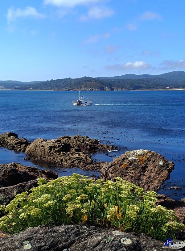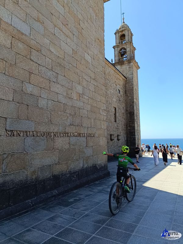 13:50 (55,1km) -> Muxia (16m) es una villa marinera de la Costa da Morte, en A Coruña, donde la fuerza del Atlántico y las leyendas se mezclan con una profunda tradición religiosa y pesquera. Su emblema es el Santuario da Virxe da Barca, junto a las curiosas piedras que, según la tradición, formaban parte de la barca de la Virgen cuando vino a consolar al apóstol Santiago. Rodeada de acantilados, faros y playas salvajes como Nemiña o Lourido, Muxía conserva un ambiente auténtico y tranquilo, con sabor a mar y a historia. También guarda la memoria del desastre del Prestige en 2002, que marcó a sus vecinos pero reforzó su vínculo con el mar y su espíritu de resistencia.