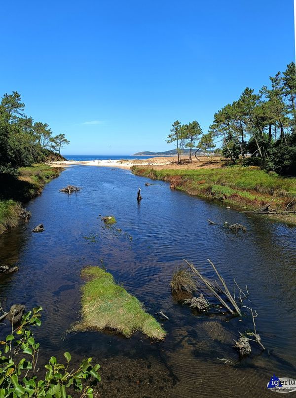 La abrupta línea de costa nos invita a rodar los siguientes tramos por carretera camino a Ponte do Porto, que nos permite cruzar el río Porto. Ya con viento a favor, atravesamos el angosto núcleo urbano de Cereixo.