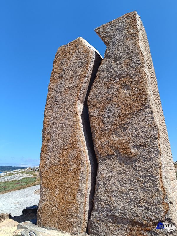 Junto al santuarito está la enorme escultura A Ferida, es una obra memorial que no solo recuerda la tragedia ambiental y humana del Prestige, sino también la solidaridad de los voluntarios, y pretende que ese daño no sea olvidado, insertándose en el paisaje con fuerza para provocar la reflexión. Terminamos de bordear Muxia por el oeste.